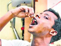 Một anh chàng người Ấn Độ đang tích cực ăn gián với hy vọng được danh ghi vào sách kỷ lục Guinness. Anh Jagan, kế toán tại một cửa hàng bán ô tô, đã ăn côn trùng trong suốt 9 năm qua. Đã đọc: 1561 |